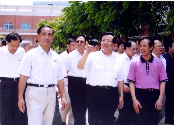 校友李秀生(左一)和国家领导人曾庆红(左二)在一起